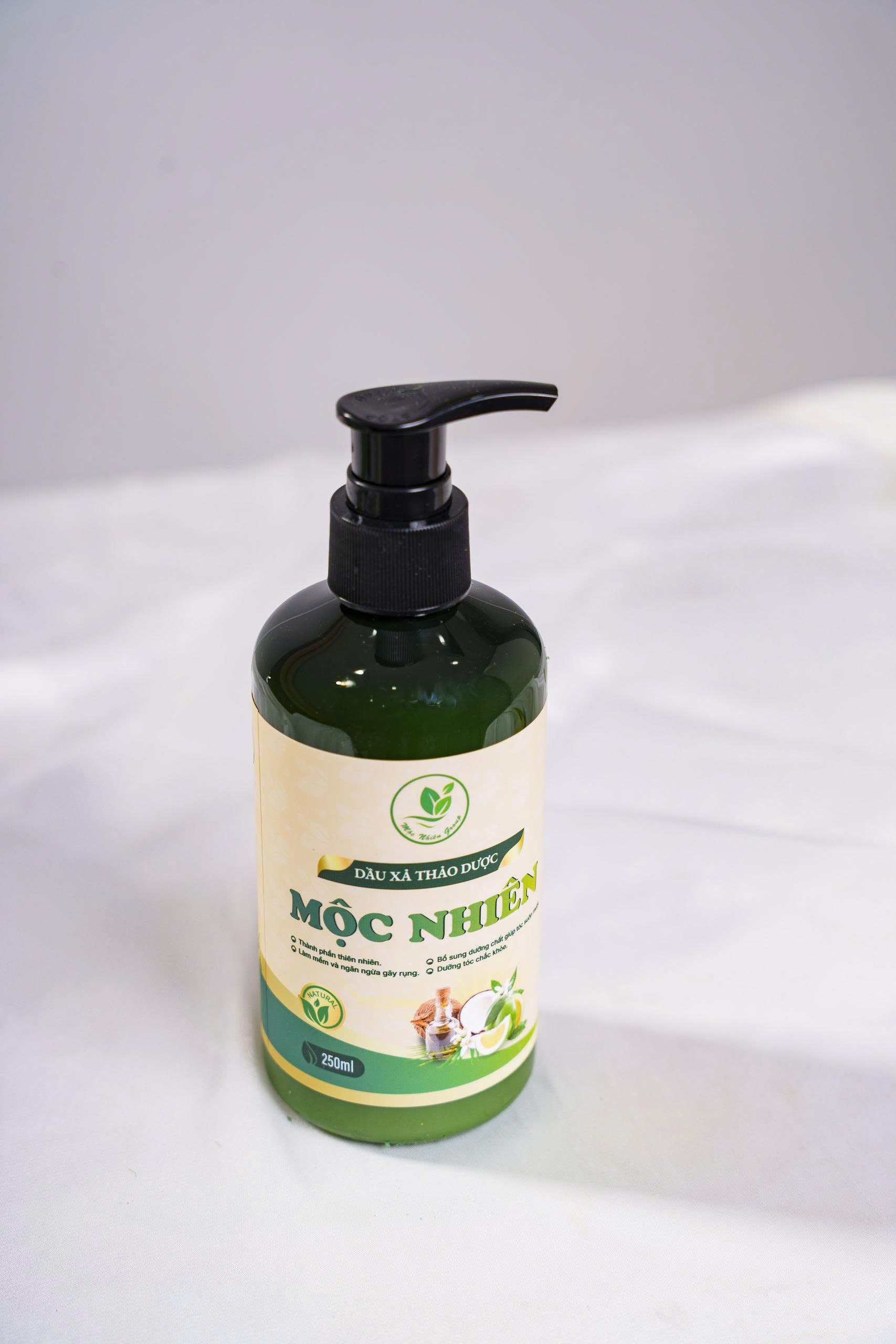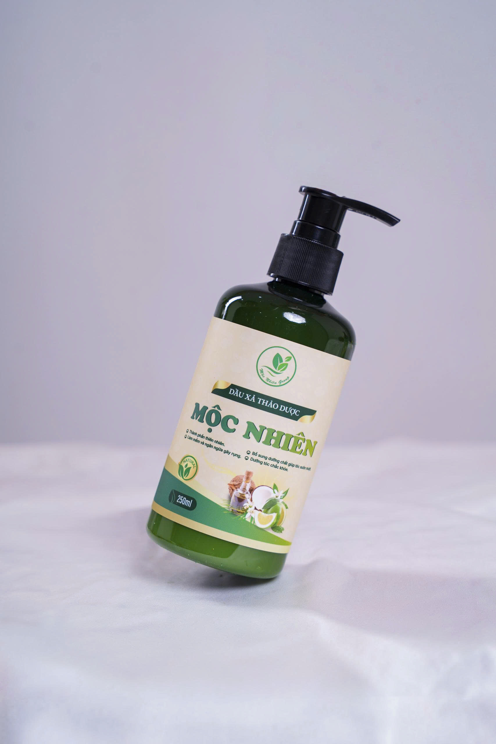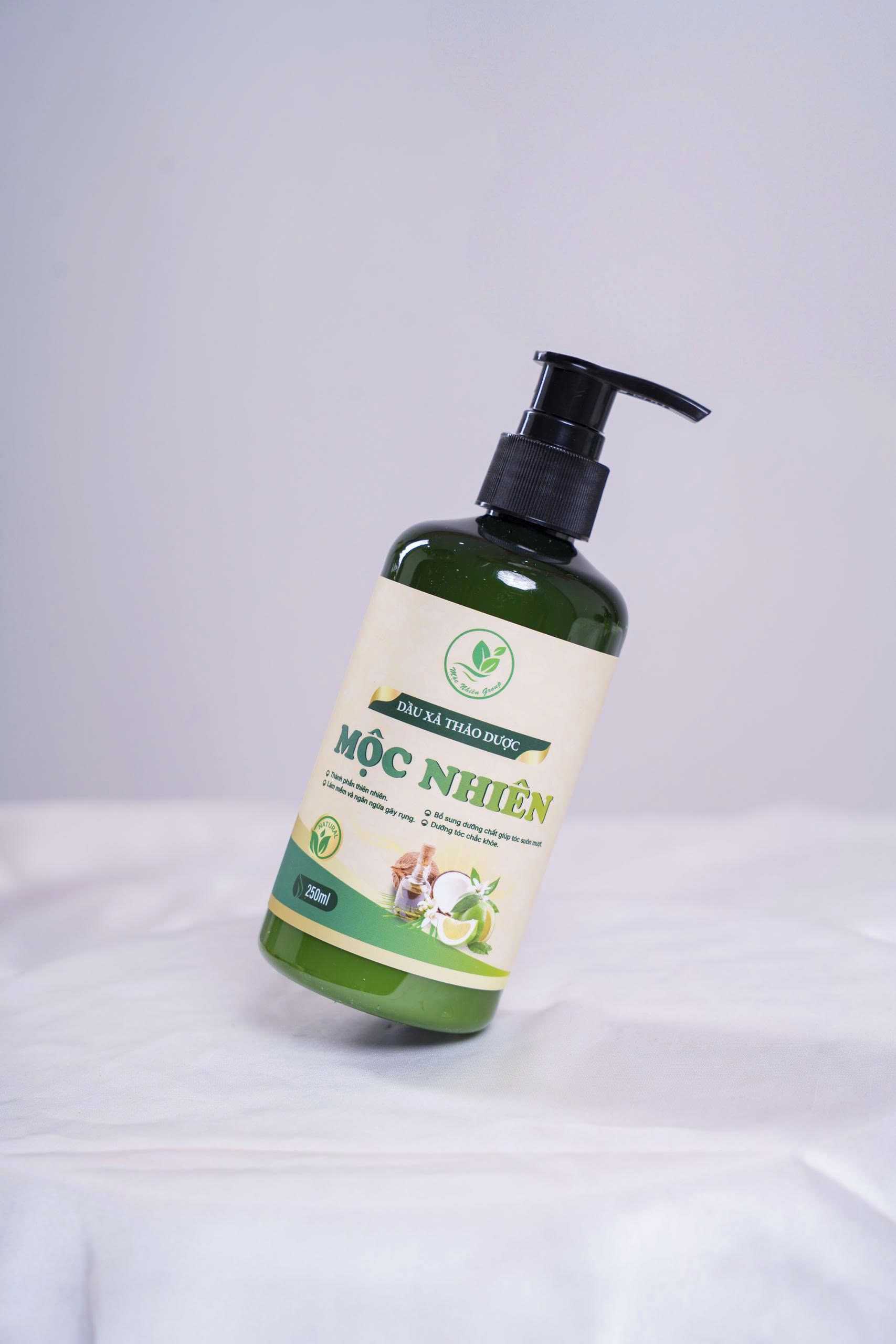 1️ Làm sạch tóc: Sau khi gội đầu bằng dầu gội thảo mộc, xả sạch tóc với nước.